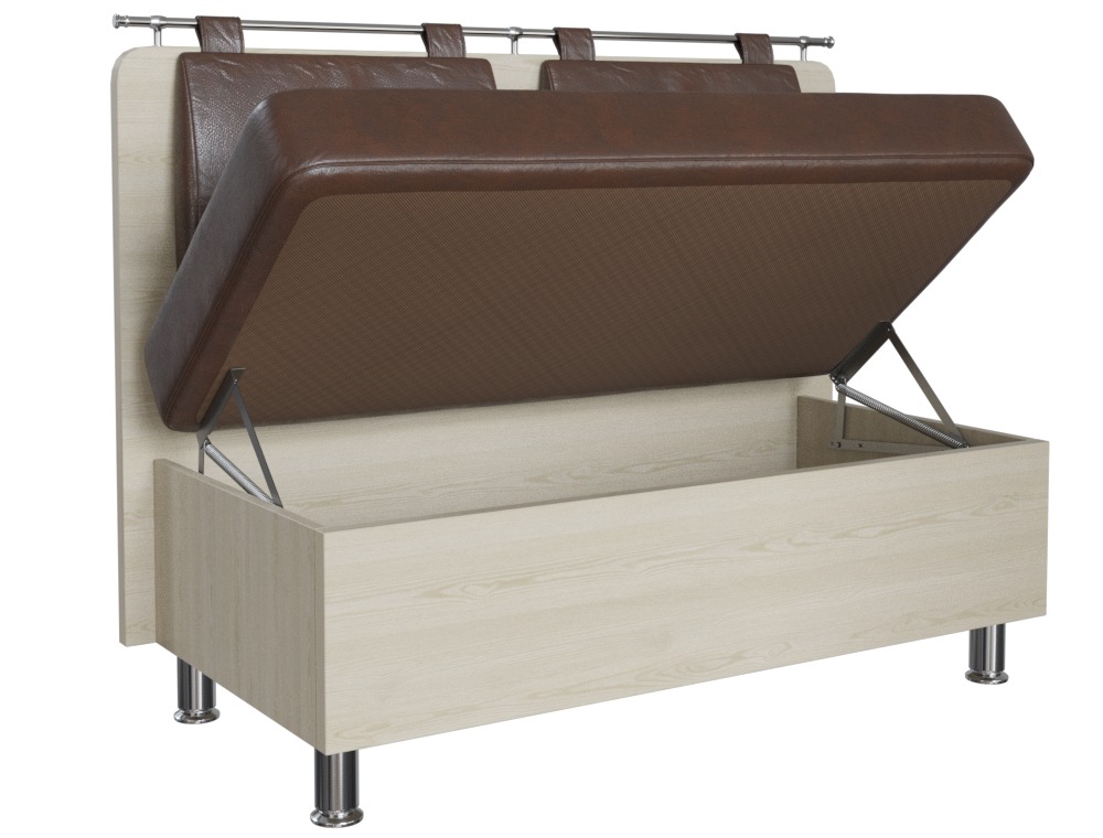 | Широкий выбор цветов и фактур | Диван такой конструкции занимает много места, поэтому подойдет только для больших кухонь | |
