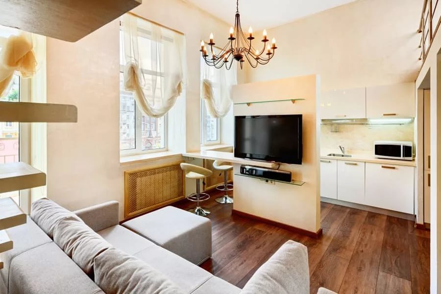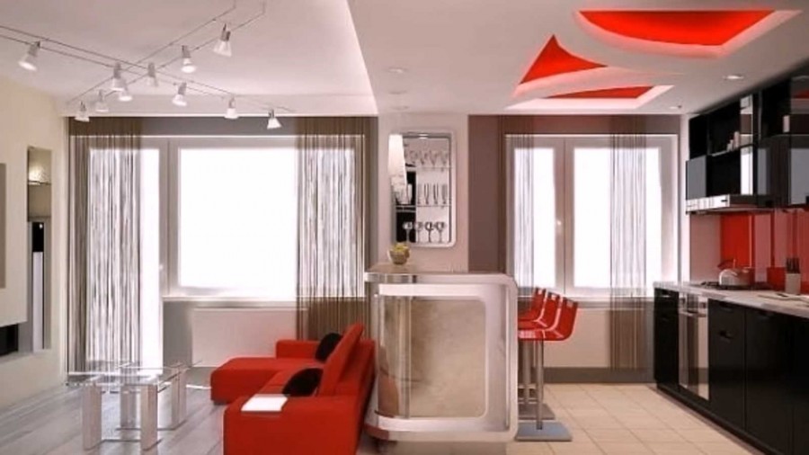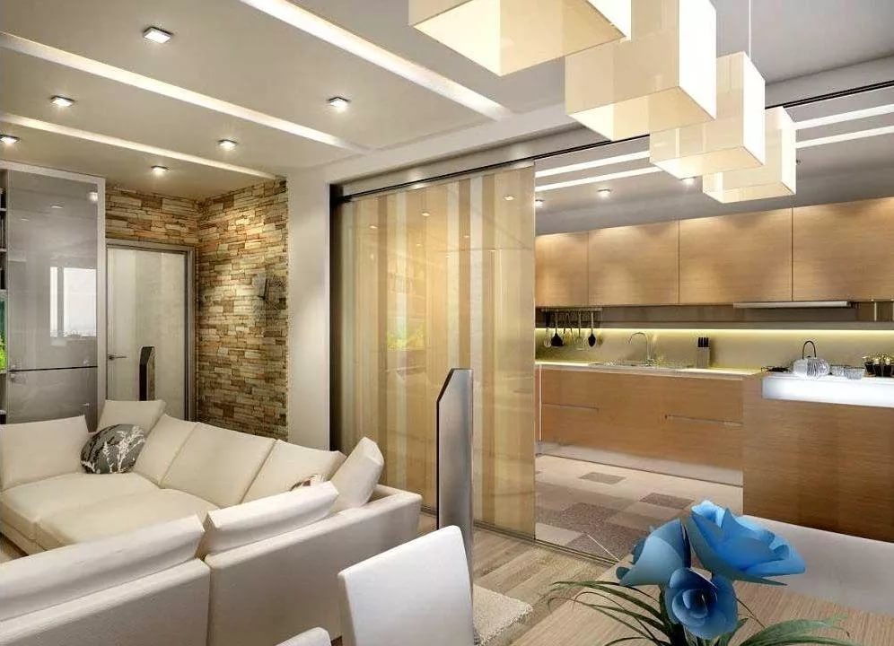Зонирование помещения: дизайн кухонной и гостиной зон