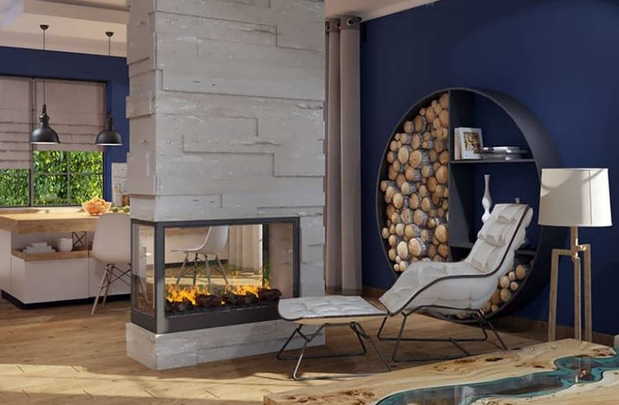 Форма камина напрямую зависит от замысла дизайнера, а также выбранного месторасположения. Он может быть квадратный, прямоугольный, угловой или цилиндрической формы