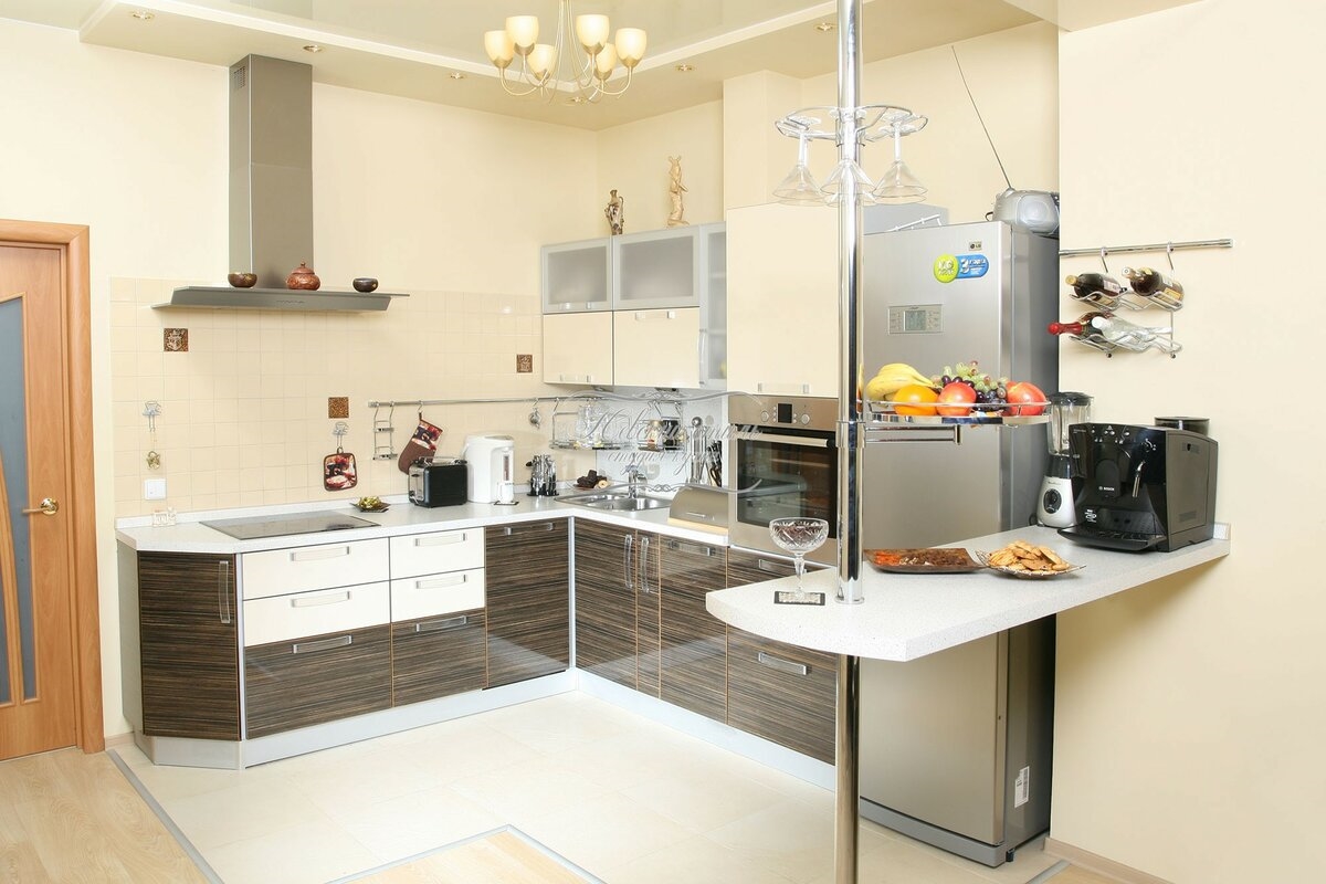 - Бытовая техника должна быть также бесшумной. В противном случае вам не видать покоя, тишины и спокойного отдыха. Прекрасной альтернативой в данной ситуации может служить встраиваемая техника. Так как в этом случае фасад кухонного гарнитура будет еще и дополнительной звукоизоляцией.