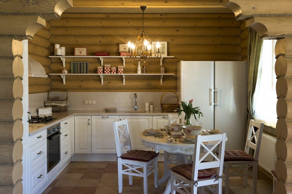 Если вы еще не определились, каким хотите видеть интерьер вашего деревянного дома, стоит посмотреть фотографии готовых интерьеров гостиных, кухонь и спален.