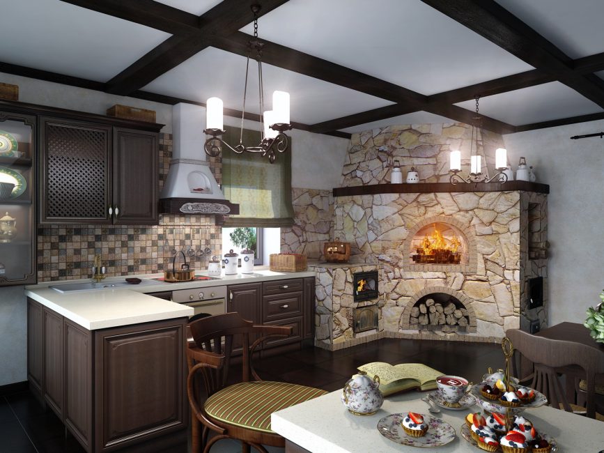 Кухонный дизайн в стилистике русских изб – это экологичное пространство, удобно организованное и приятное глазу.