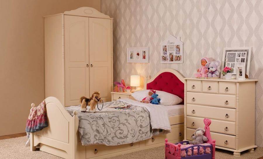 Детская комната в этом оформлении напоминает сказочный домик – уютный, простой и пахнущий деревом. Здесь нет непреложных законов оформления. Используйте деревянные вставки и панели. Мебель, соответственно, тоже деревянная. Стены можно оклеить обоями с чуть видным растительным рисунком или выкрасить в пастельные тона. Отличной идеей будет ручная роспись на стене, будь то герои сказок или же просто сказочный лес со зверушками. На пол лучше положить большой ковер, чтобы ребенку было удобно и тепло играть. Также уместны будут старые яркие игрушки, выставленные на полках в качестве декора.