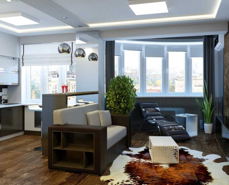 Студия, увеличенная за счет удаления перегородки между комнатой и лоджией