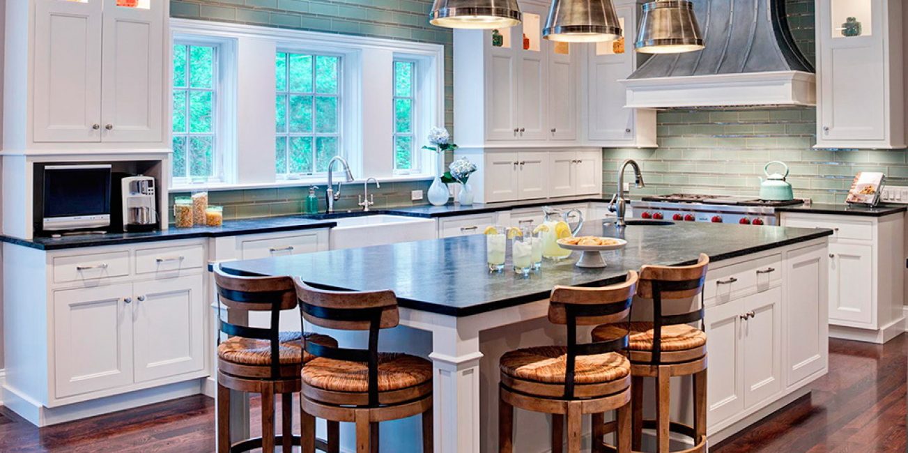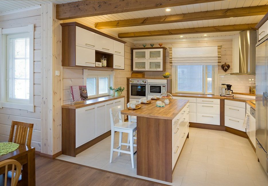 В интерьере большой кухни может быть выделено больше зон, чем в малогабаритной городской квартире.