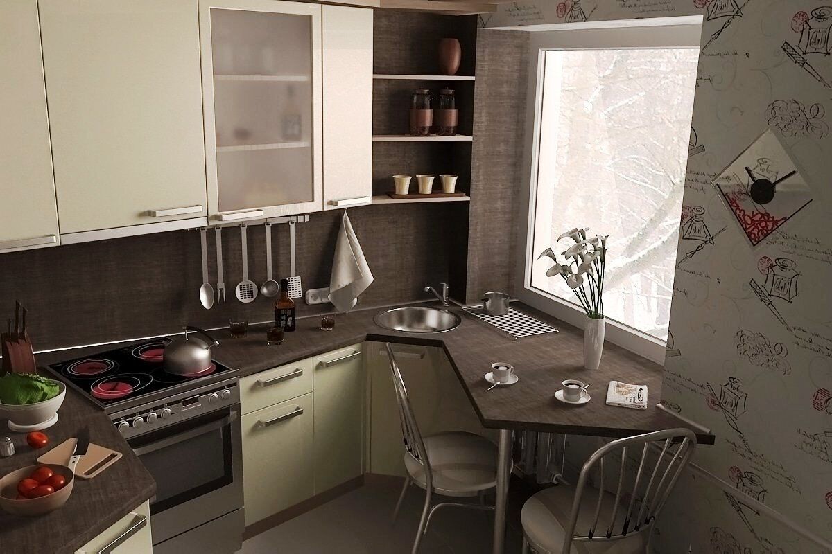 На крошечных кухнях, особенно заставленных мебелью и техникой, есть опасность зацепить и опрокинуть какую-либо вещь и даже получить травму. Приходится втискиваться между шкафчиками и столом, а если, к примеру, завтракают двое или трое, становится совсем тесно. Выходом в таком случае будут угловые малогабаритные кухни. Они обладают следующими плюсами: