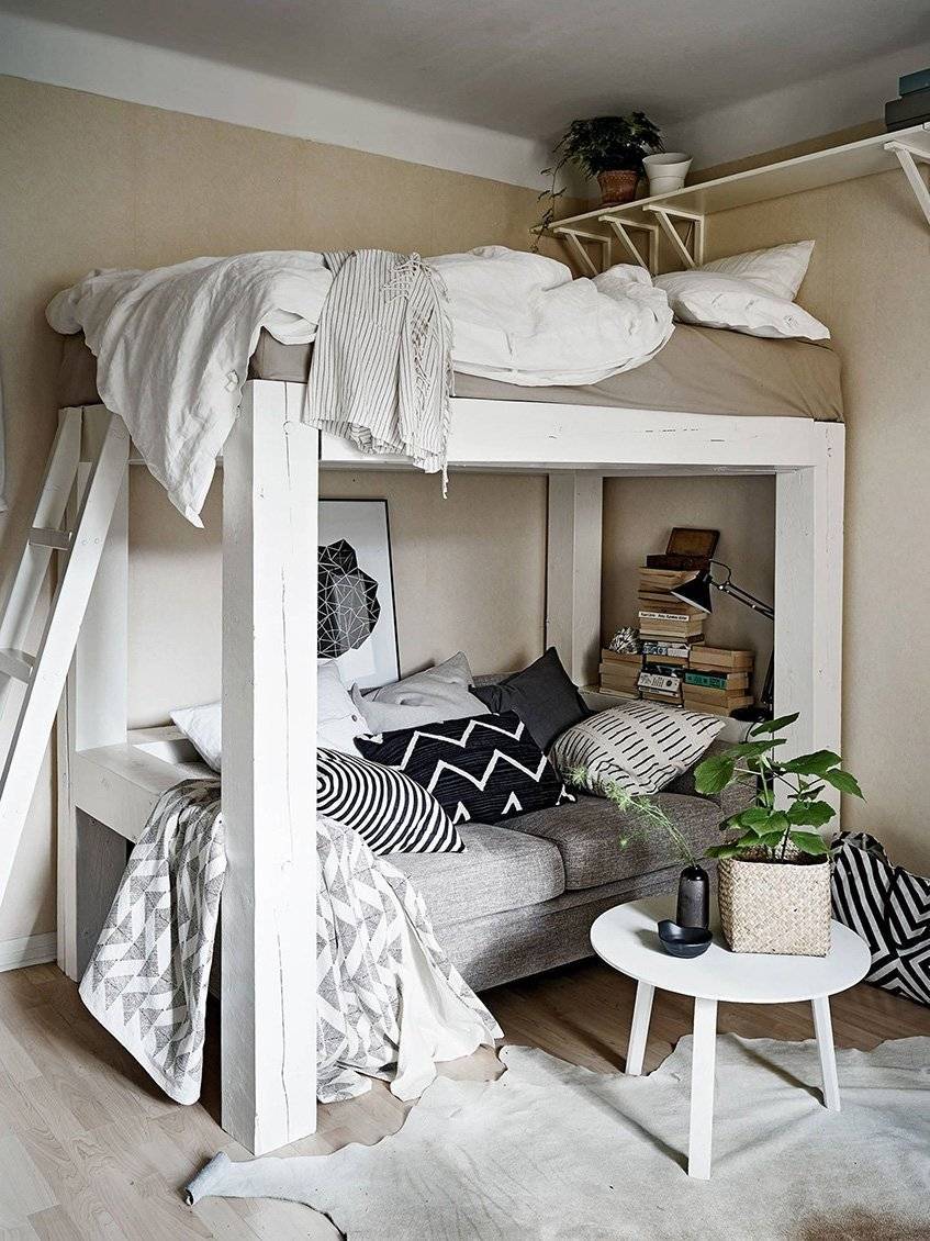 Кровать-подиум сочетает в себе оригинальный дизайн, удобство и функциональность — мебель для маленькой спальни фото