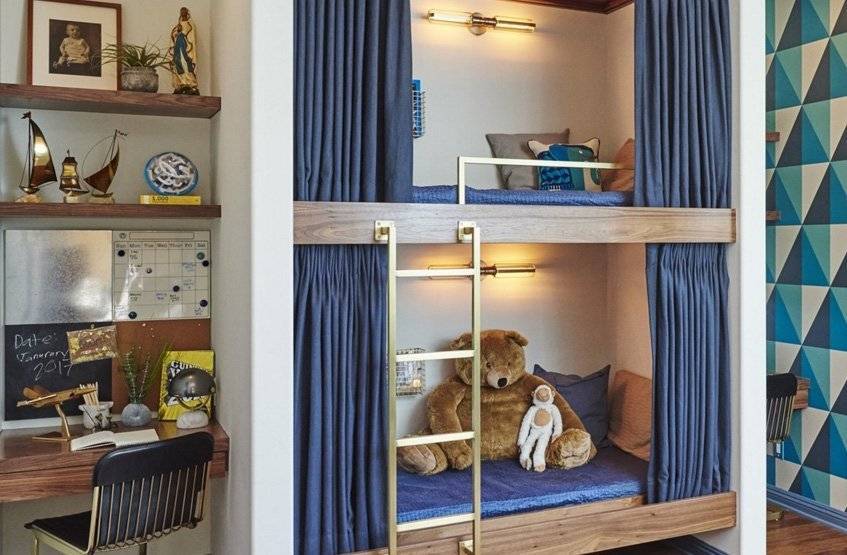 Для детей в маленькой спальне лучше всего подойдет современная двухъярусная кровать.