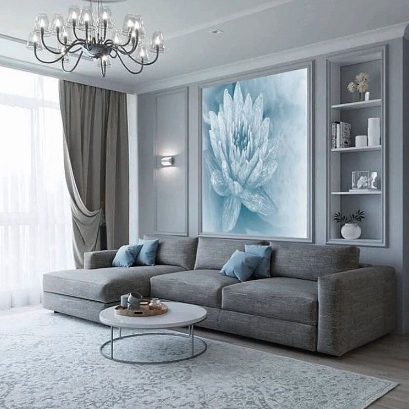 Интересные и необычные принты для зала — хорошее решение. Такие обои станут изюминкой комнаты и придадут ей свежести.