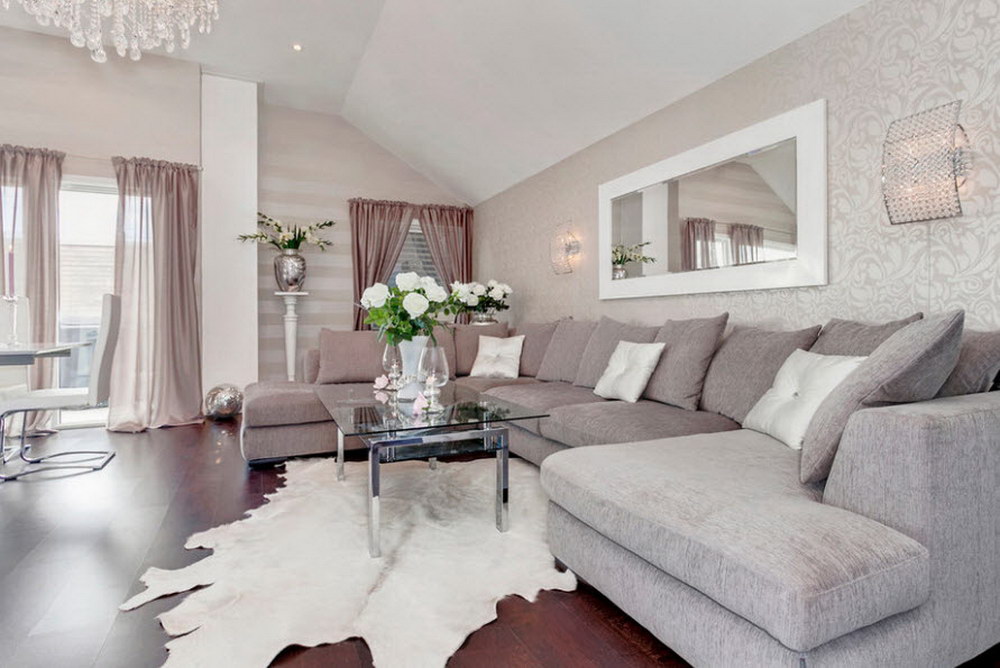 - Белый цвет и его оттенки молочного, льняного, экрю, слоновой кости наполняют пространство ощущением объема и высоты, способствуют гармонии и энергии. С помощью светлых обоев создаются невероятно уютные гостиные. Единственным недостатком белых и близким к белым обоям можно считать то, что пыль, грязь и другие загрязнения на светлых стенах заметнее всего. Поэтому, если в вашей семье есть ребенок с активным желанием воплотить свои художественные стремления на светлых обоях, подумайте несколько раз, приемлемо ли для вас детское творчество на стенах зала.