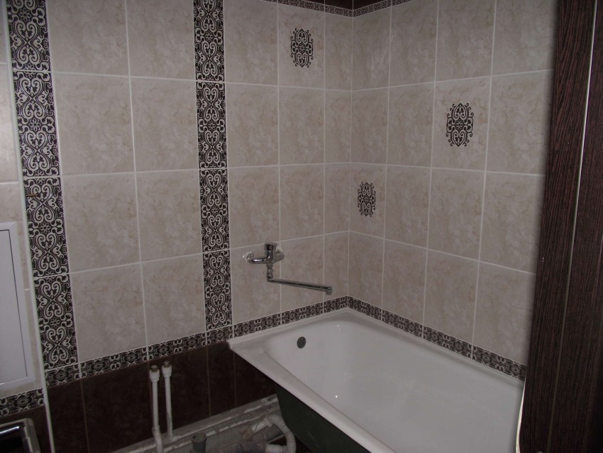 - при оформлении ванной следует сочетать декоры с бордюрами;
