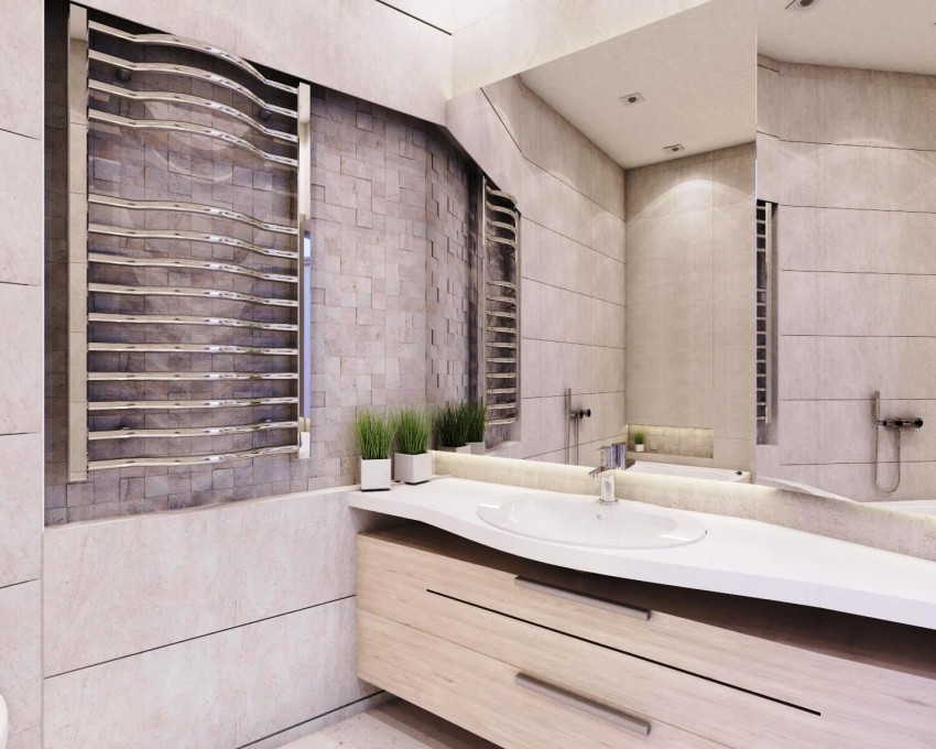 Комбинируйте плитки разных типов друг с другом. Интерьер ванной комнаты, в отделке которой использовалось сочетание разных отделочных материалов, всегда выглядит свежо и оригинально.