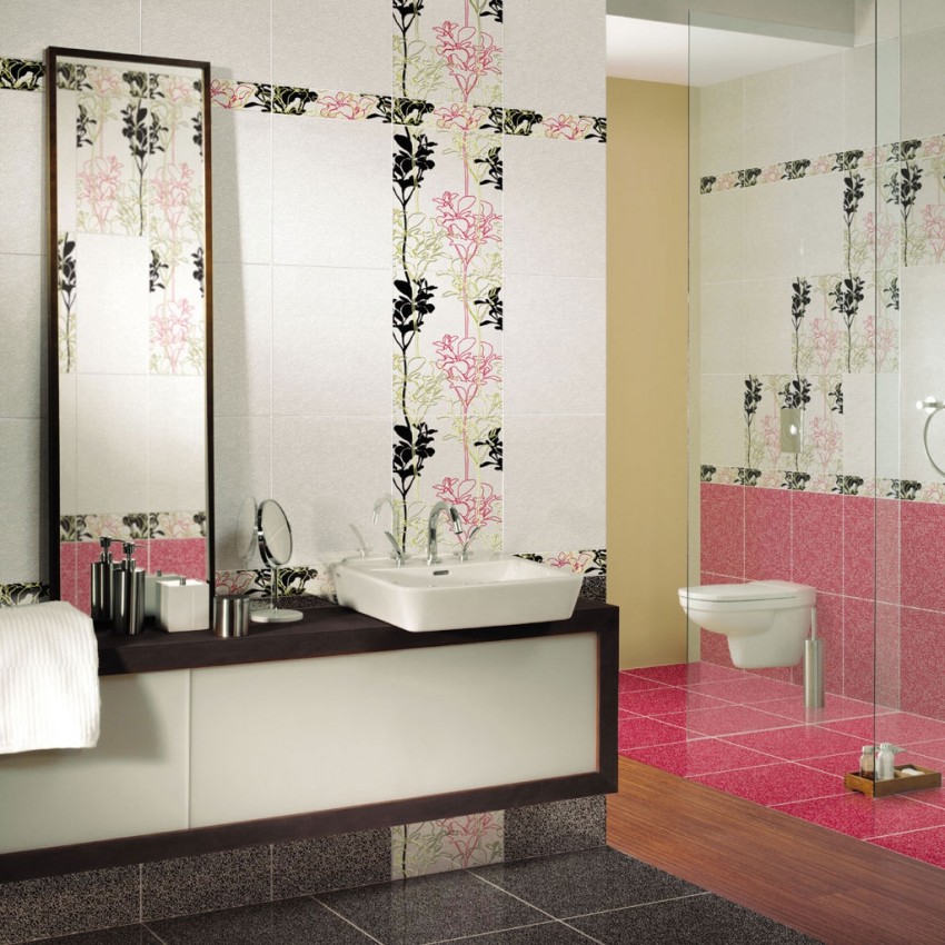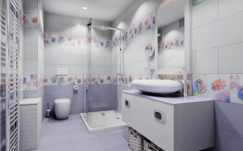Для того чтобы обстановка ванной комнаты была не вычурной, а выглядела стильно и эффектно, при монтаже плит с цветочным орнаментом следует придерживаться некоторых рекомендаций: