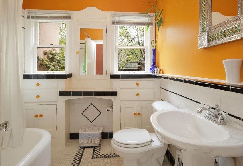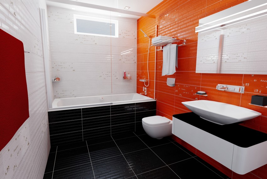 С образцами яркой палитры ситуация обратная. Их разбавляют нейтральными оттенками. Используются они для зонирования площади: раковины, кухонного фартука, туалета.