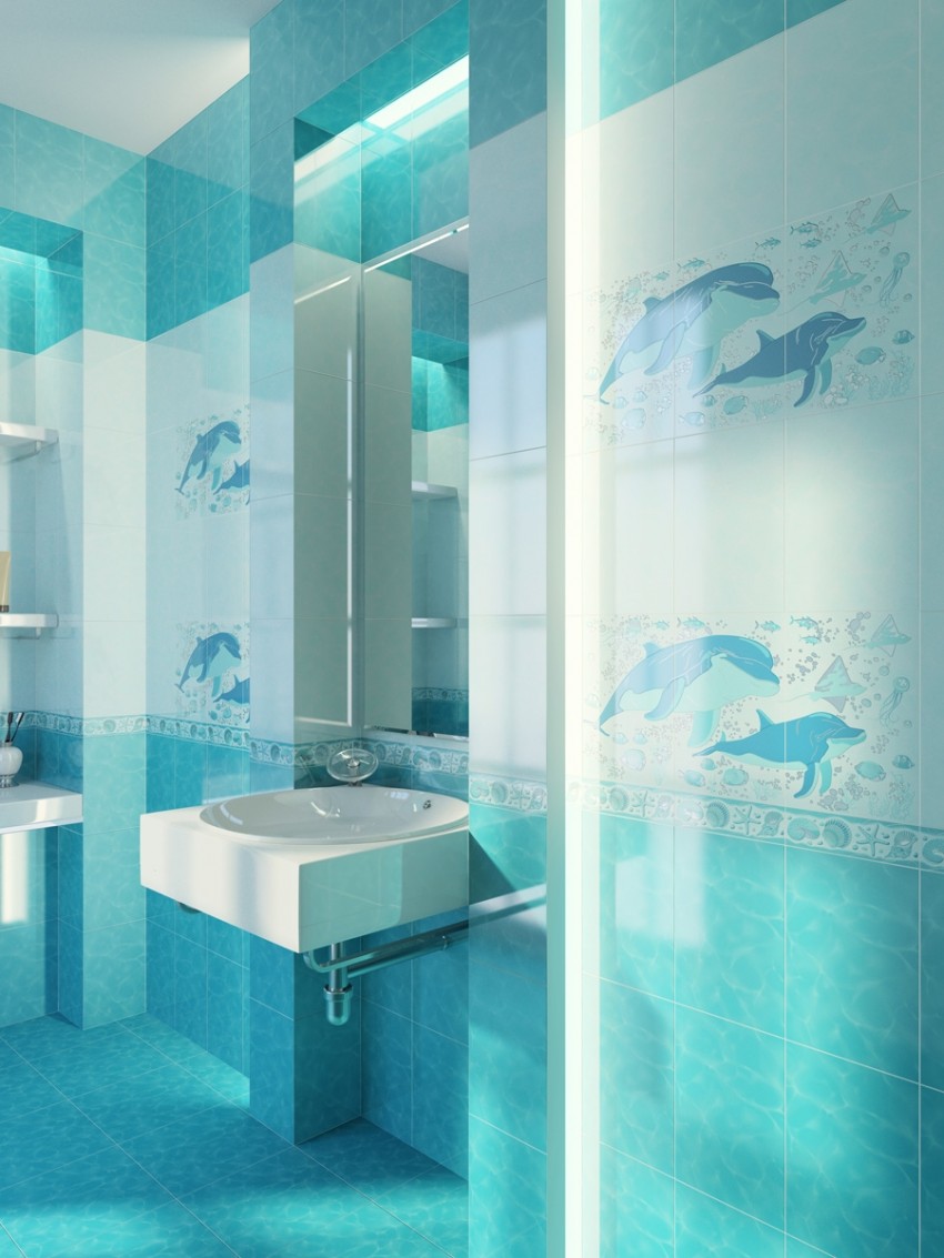 При выборе покрытия стоит учитывать и особенности помещения. Так, например, кафель холодных оттенков (голубой, зеленый) лучше использовать в светлых, теплых помещения. Холодные оттенки лучше разбавить теплыми тонами: бежевым, желтым.