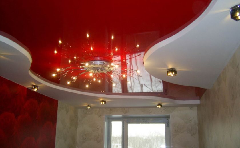 Также натяжные потолки могут выполняться в виде многоуровневых конструкций. Но именно за счет простоты монтажа они далеко обогнали потолки из гипсокартона.