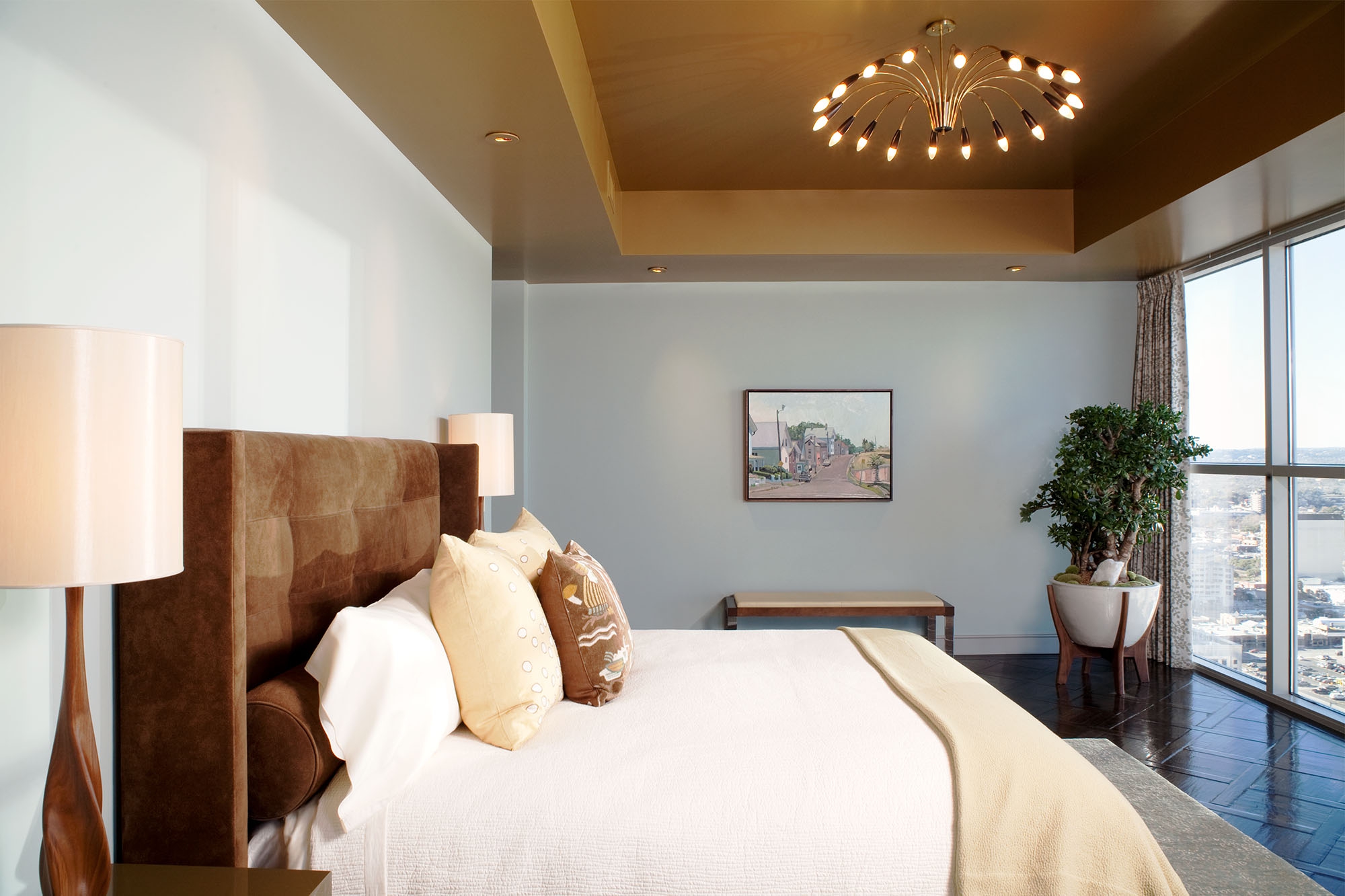 На наш взгляд для спальни лучшим хорошим выбором будут окрашенный, натяжной, гипсокартонный потолки с матовым покрытием.