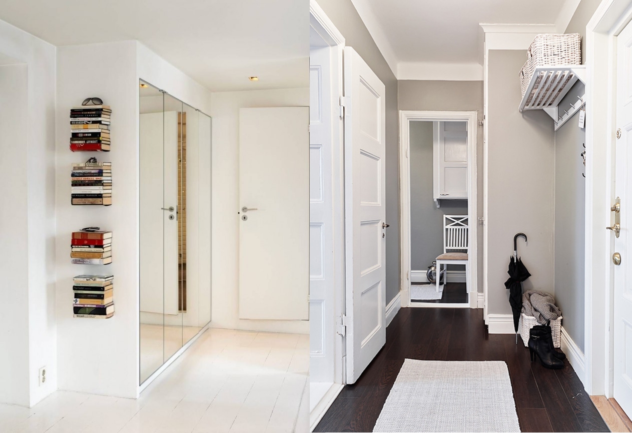 - В узком коридоре в панельном здании их необходимо сочетать с яркими или темными на коротких стенах (например, вокруг входной двери).