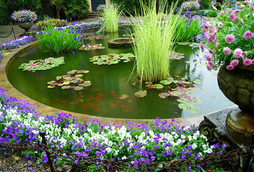 Существует огромное множество водных растений. Чтобы дизайн пруда выглядел привлекательно и нормально функционировал, нужно чтобы в нем присутствовали следующие виды водных растений: