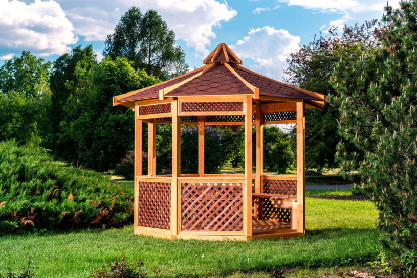 Дизайн беседки в ландшафтном дизайне разной стилистики