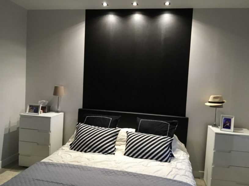 Однотонные черные интерьеры требуют гораздо больших площадей и продуманного света. А вот контрастные черные акценты творят чудеса: вертикальные линии зрительно поднимают потолок, горизонтальные – расширяют спальню. Лаконичная черная мебель и техника смотрятся особенно элегантно в современных стилях.