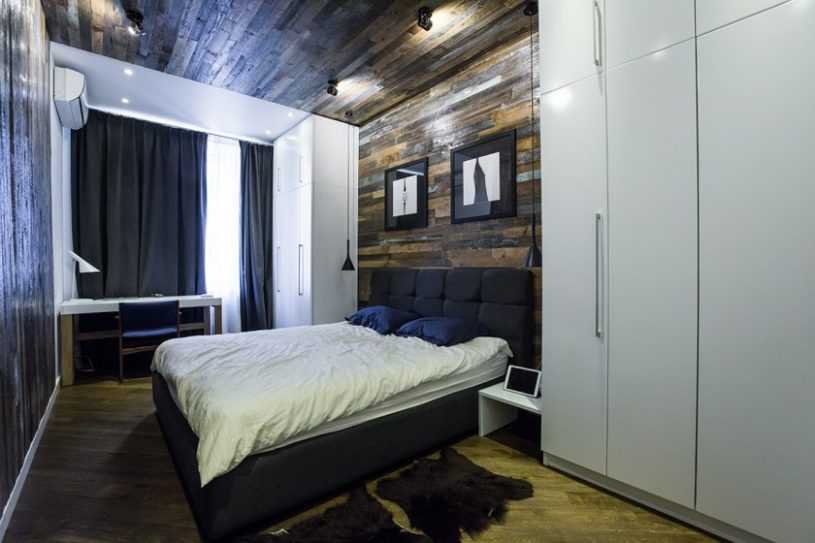 Спальня 12 кв. м. с кроватью, телевизором и платяным шкафом, дизайн которой поразит своей дерзостью и нарочитой брутальностью, приобретет уникальные черты в стиле чердачного лофта. Вместе с тем интерьер отличается мягким уютом и поразительным комфортом.