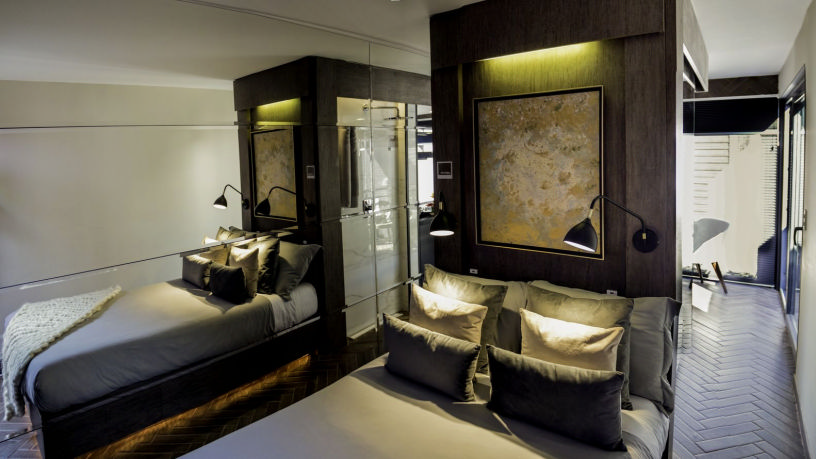 - бра или светильники расставляют у кровати на тумбочках или возле них;