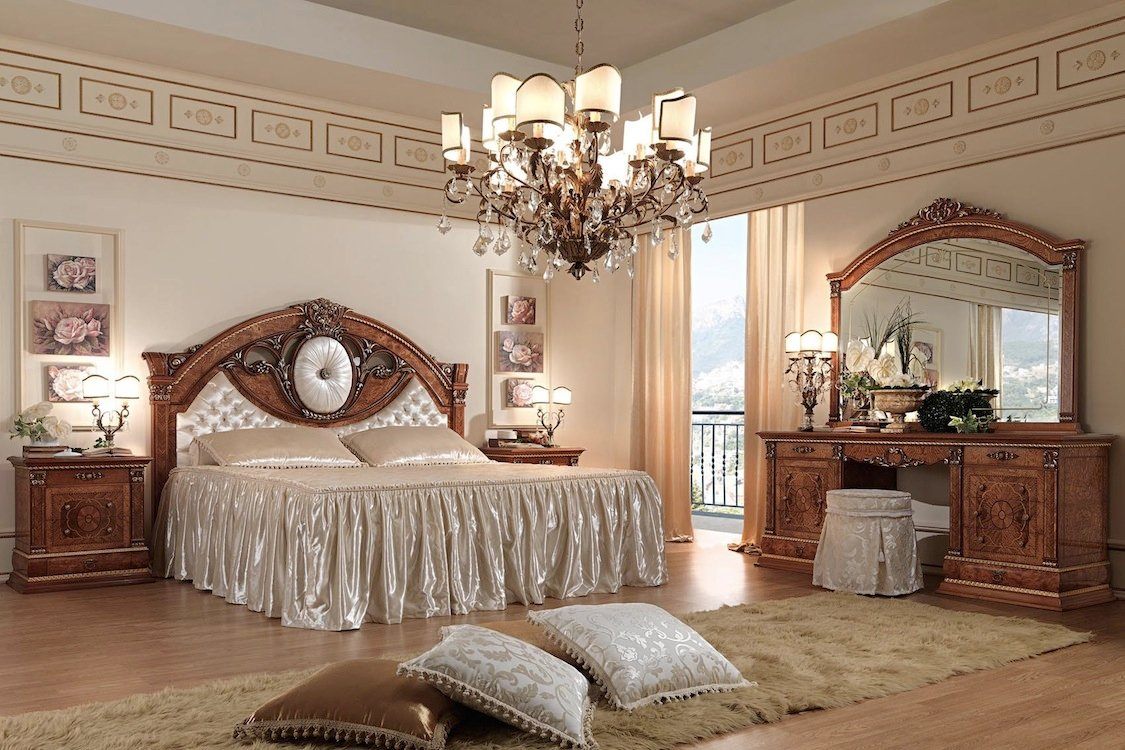 Классическая мебель для спальни не может быть разрозненной. Она обязательно должна представлять собой полноценный гарнитур из множества элементов, идентично оформленных.