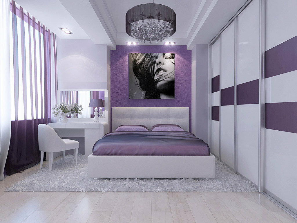 Спальня в фиолетовых тонах – выбор многих