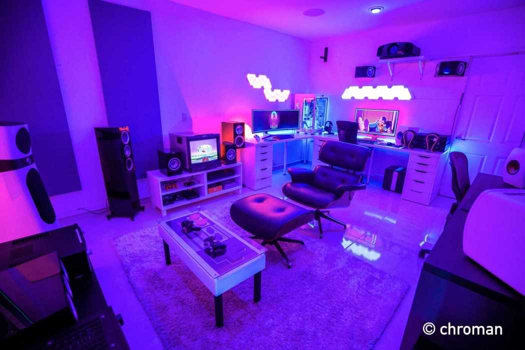 Геймерская комната в стиле хай тек, светодиодная подсветка
