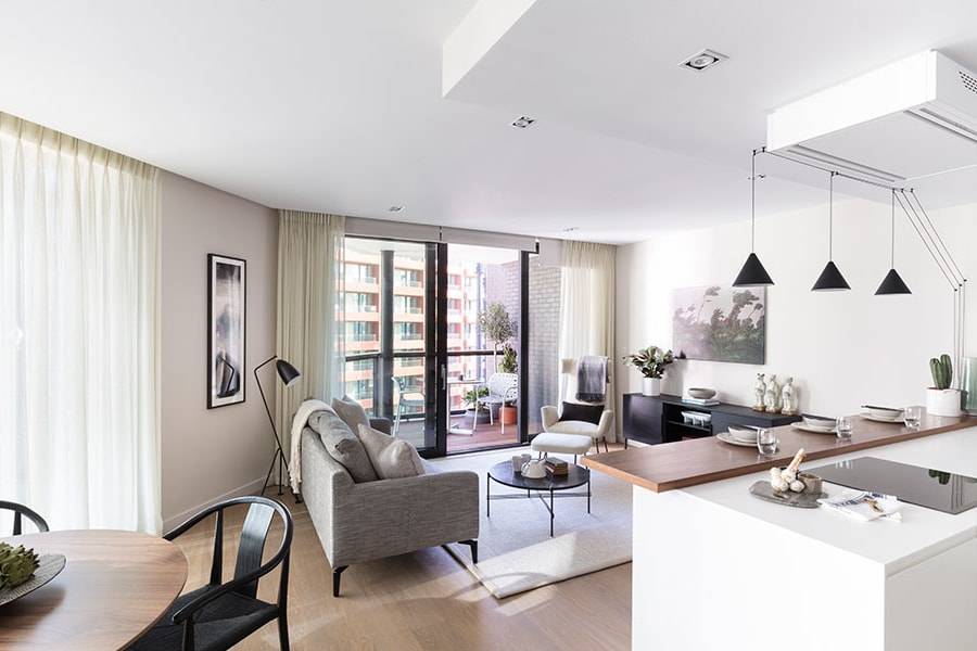 Отличительная черта стиля – использование малого количества аксессуаров, простой мебели, чтобы экономить пространство. Чтобы отделить одну функциональную зону от другой, можно применять различные перегородки, например, сделанные из матового стекла. Мебель, которой вы обставите квартиру, должна быть не только эргономичной, но и легко передвигаться и трансформироваться. Также в качестве перегородки подойдут жалюзи.