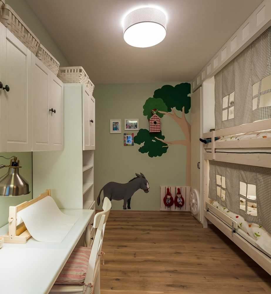 Настоящим спасением станет трансформирующаяся мебель, которая поможет стильно и функционально наполнить интерьер любой маленькой детской. Рассмотри модели кроватей, которые в сложенном состоянии прячутся в шкаф или превращаются в стол. Сейчас на мебельном рынке можно найти все что угодно или сделать под заказ.