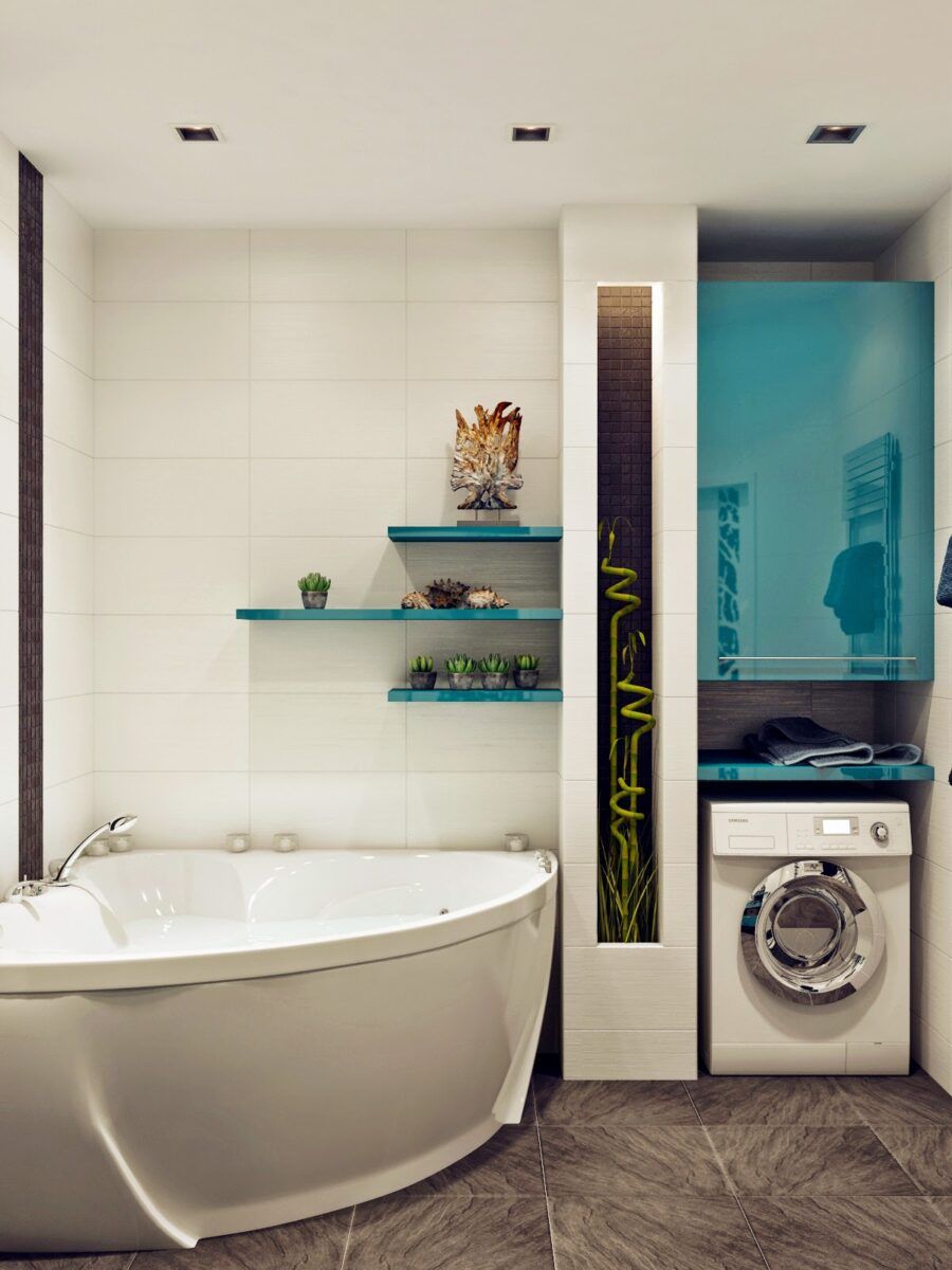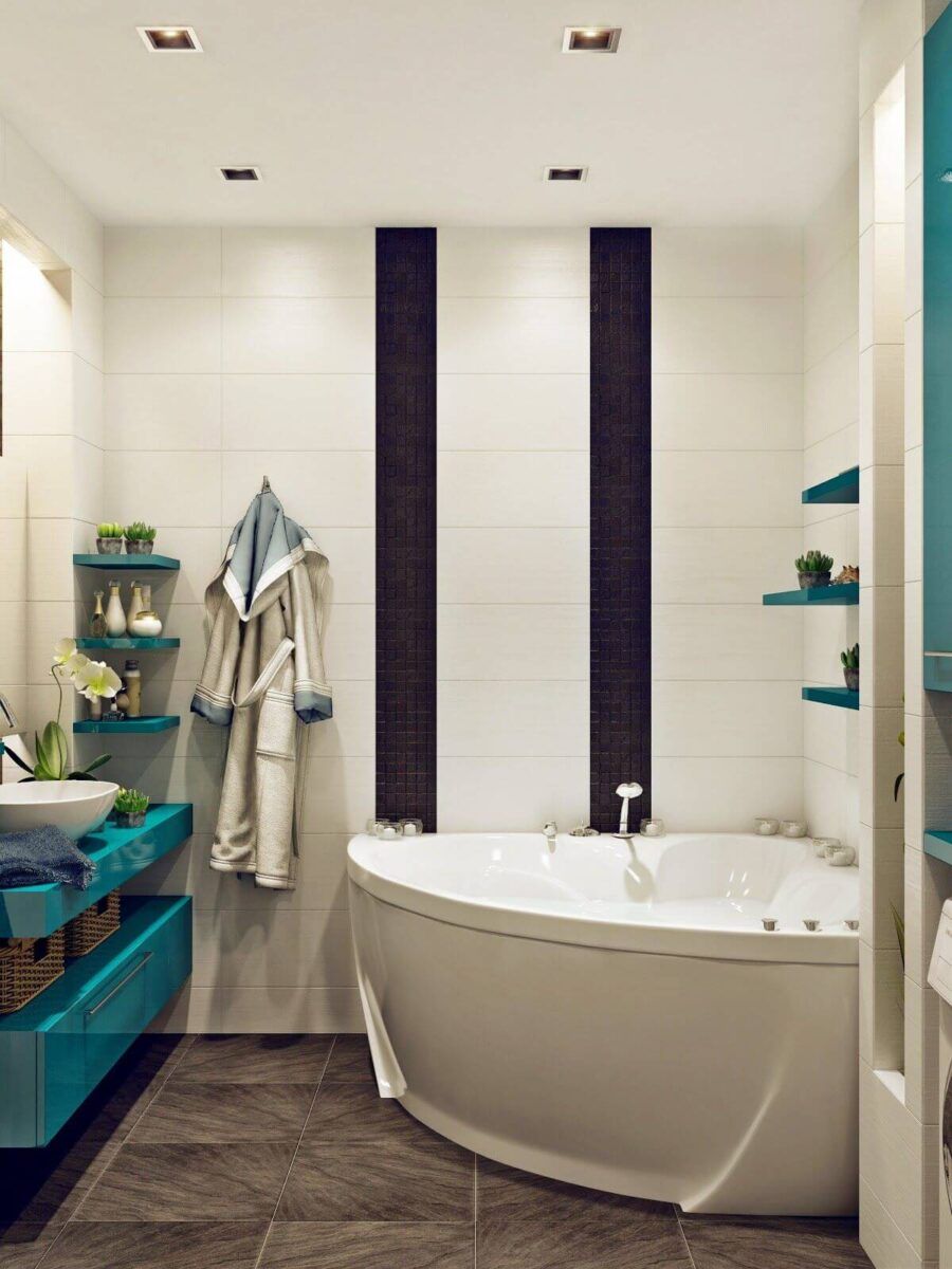 Опыт и художественный вкус позволят создать уникальный декор в маленьком пространстве. А угловые ванные являются одним из лучших способов создания интересных интерьеров помещений для водных процедур, в которых жильцам дома будет комфортно.