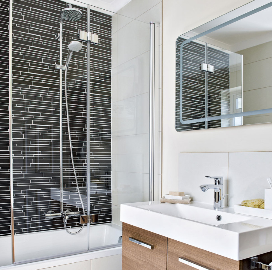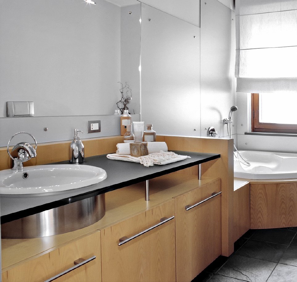 | Количество мелочей должно быть минимальным | Мелочи забирают пространство. Поэтому бутылочек и других средств личной гигиены должно быть на виду, как можно меньше. Лучше их спрятать в шкафчик, который можно закрыть. |