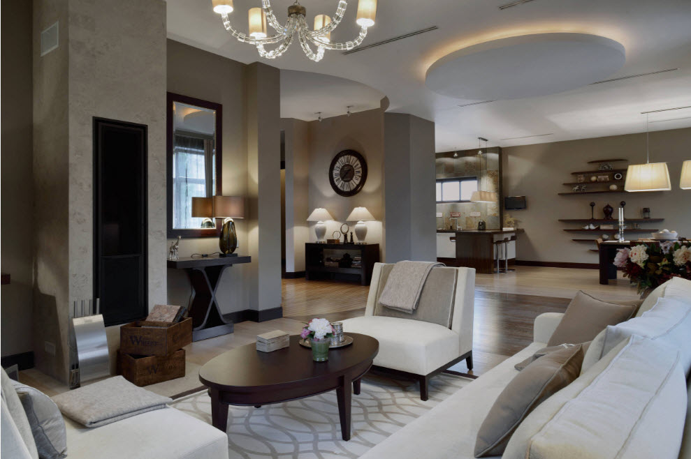 Гостиная в загородном доме станет «классической», если ее выполнить в мягких, спокойных цветовых палитрах: