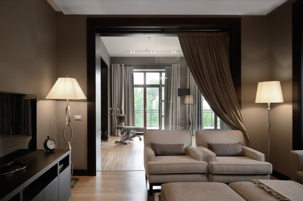 Декорировать гостиную можно по-разному. Огромная роль в этом отводится текстилю. Струящаяся ткань сгладит острые углы, и комната станет уютной. Занавески располагаются в оконных и дверных проемах, создают настроение. Они непременно должны сочетаться с остальными элементами декора: мягкими диванными подушками, цветом стен и ковра и т. д. Если вам трудно определиться, воспользуйтесь готовыми идеями.