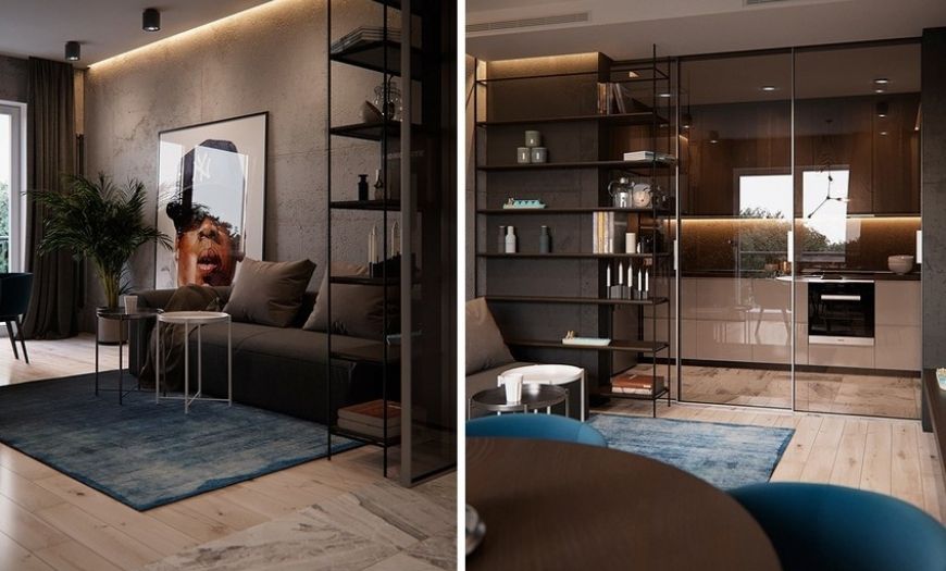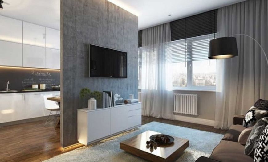 Интерьер гостиной с перегородкойИсточник roomester.ru