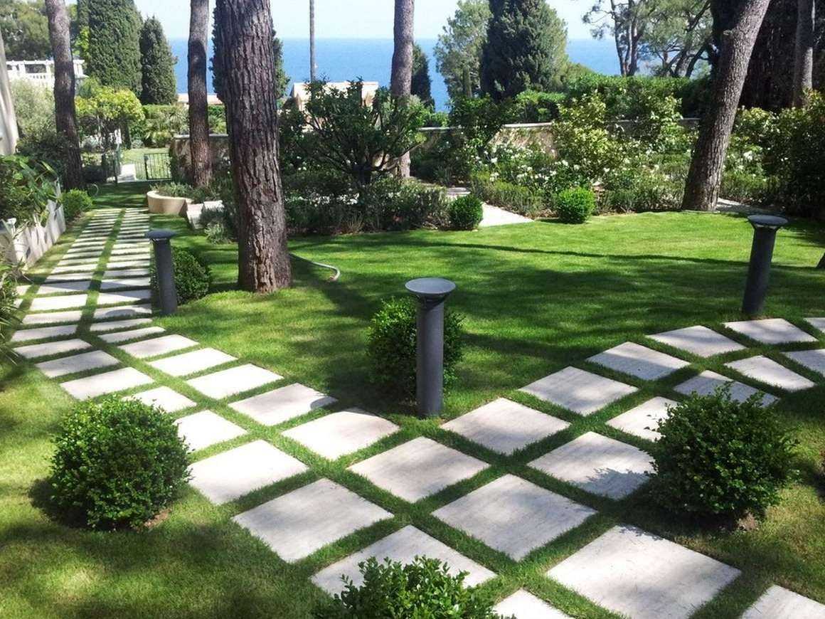 - Земля, оставшаяся между плитами, может так же быть декорированной. Ее можно засадить разными растениями, к примеру, газоном.