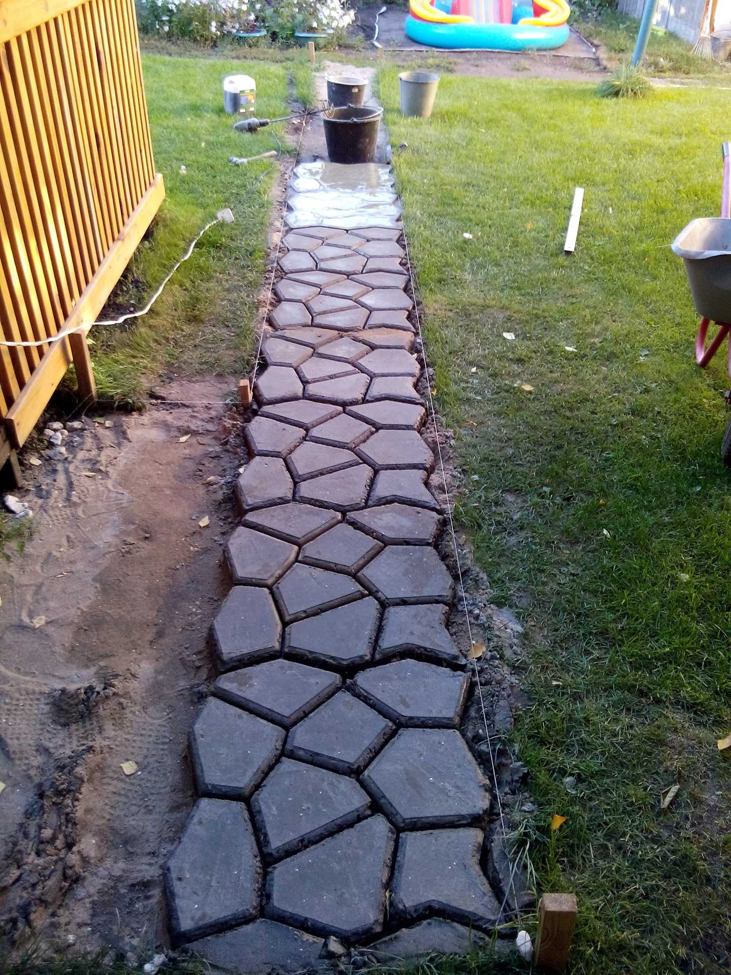 Производители пластиковых форм утверждают, что для дачного участка достаточно одного экземпляра, в рекламе говорится только о простоте и удобстве. Однако для успешного результата нужно приготовить правильный раствор нужной консистенции, что неопытным дачникам будет затруднительно. Средний срок службы такого покрытия около 10 лет. При наличии времени и желания вполне можно попробовать, но для дорожек небольшой протяженности.