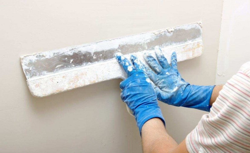 Далее с помощью широкого шпателя состав переносят на подготовленную поверхность