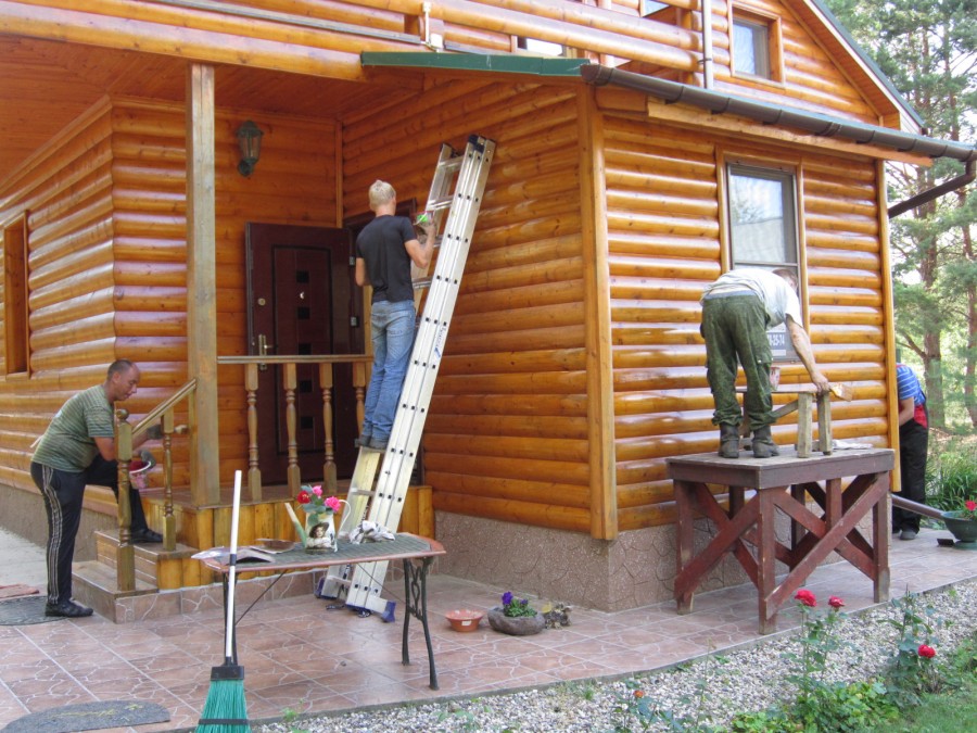 Если стоит выбор какая краска лучше для фасада деревянного дома, то может потребоваться предварительная обработка антифунгицидными (противогрибковыми) пропитками.