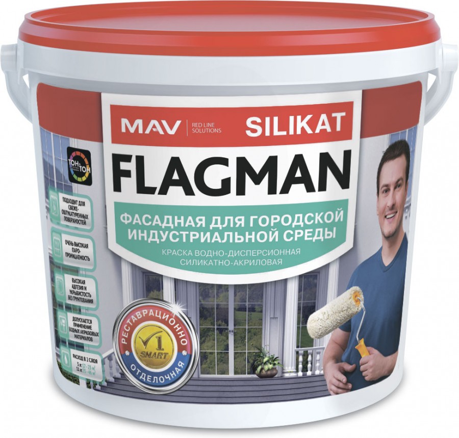 - Силикон-силикатная фасадная краска — благодаря использованию силиконовых смол она отличается повышенной водостойкостью и паропроницаемостью. Может также использоваться на органических поверхностях;