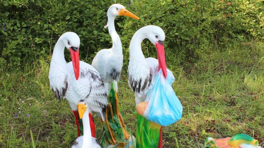 Самый неприхотливый материал для изготовления фигур — пластик. Он не боится солнца, снега, дождя.