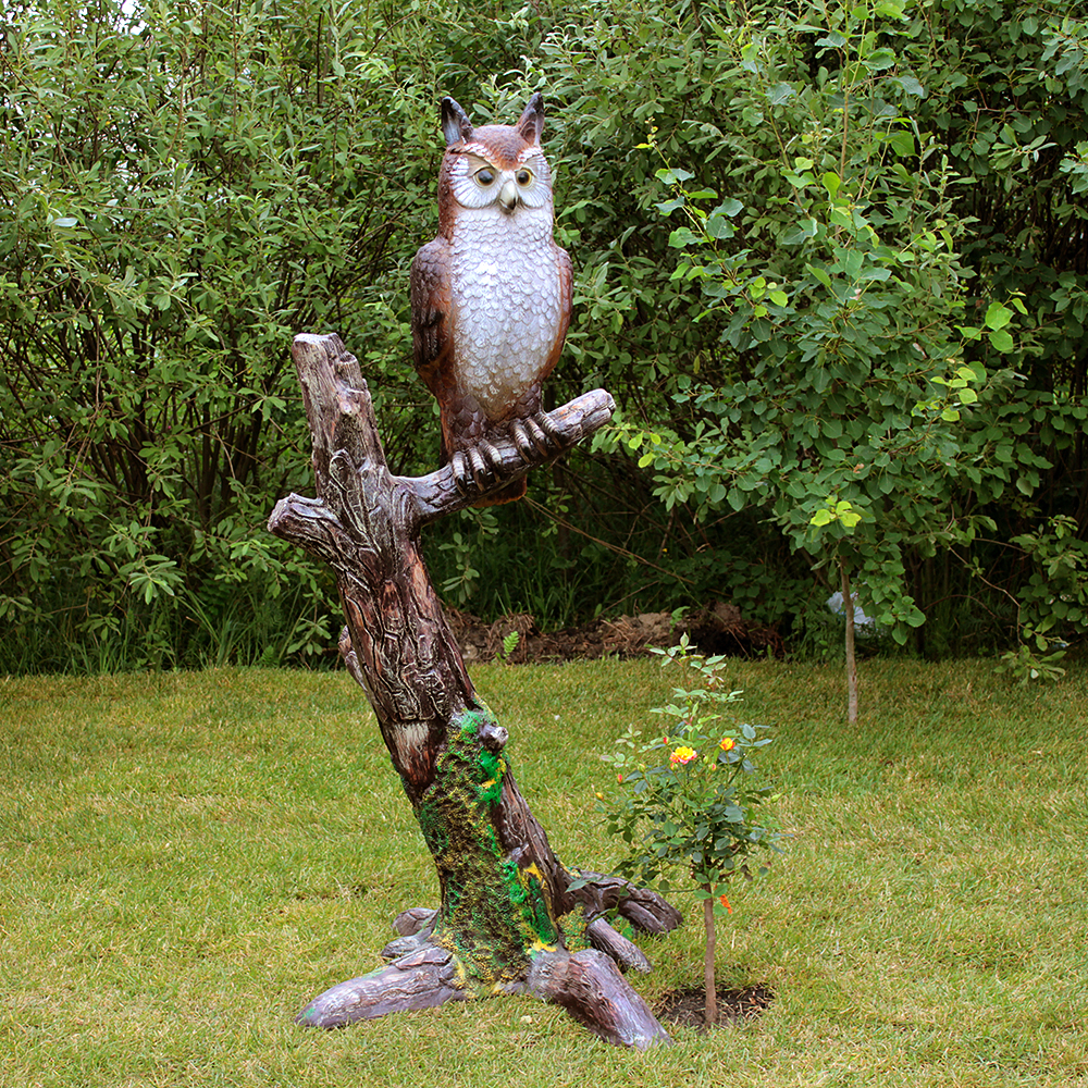 Декор для сада «Сова на ветке» – это оригинальное и стильное украшение не только для сада, но вполне уместно и для интерьера. Фигурка совы выглядит очень реалистично, как живая сидит на дереве. В самой ветке находится специальное отверстие, которое позволяет надеть фигурку на дерево или закрепить на стене, заборе. Над фигуркой работал профессиональный скульптор-художник. Она изготовлена из полистоуна – материала, который позволяет достигнуть максимального сходства с оригиналом. С такой неповторимой красотой сад или просто одинокое дерево заиграет совершенно по-новому.