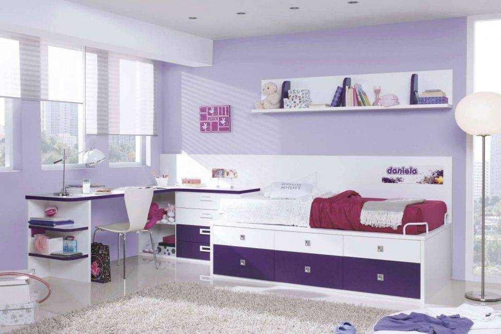 - Для спальни лучше всего подойдет нежно-фиолетовый цвет, сопровождаемый мятный, лимонным или бежевым.