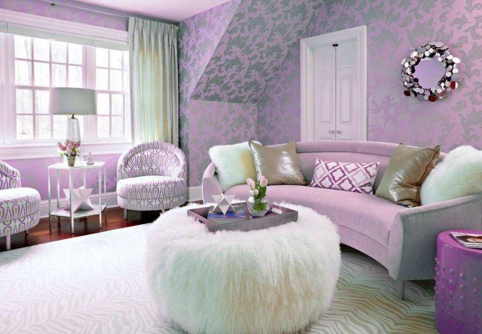 - Нежно-лиловый и сиреневый уместнее для маленьких уютных помещений.