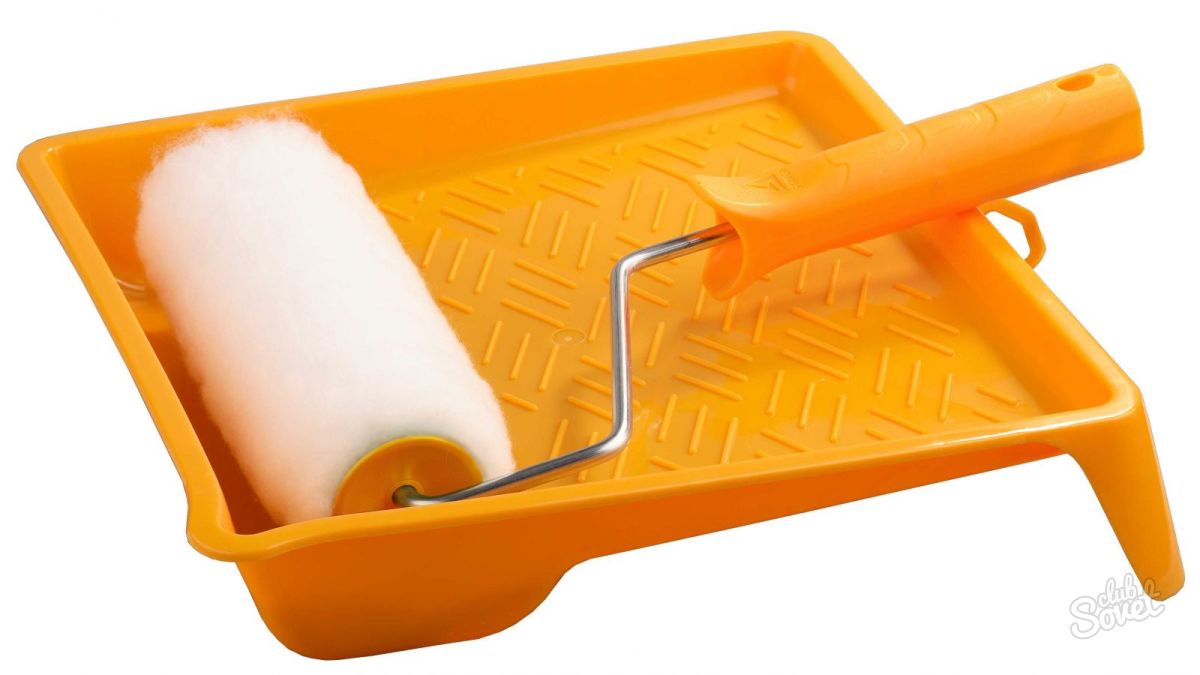 - Далее необходимо взять ворсистый малярный валик, опустить его в ёмкость, где находится разведённая по рецепту краска. Инструмент хорошо прокатывается, чтобы краска в него впиталась. Затем её нужно чуток отжать, проведя валиком по бугристому поддону посуды.