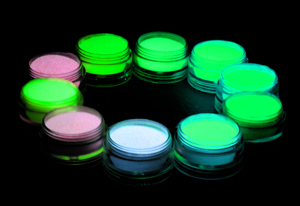 Люминофорная (люминесцентная) краска. Универсальное покрытие с быстрым светонакопительным эффектом (до 30 минут) и стабильным свечением более 10 часов. Составы на основе люминофоров применяются для окрашивания любых поверхностей: от стен в квартире до боди-арта или элементов на униформе.
