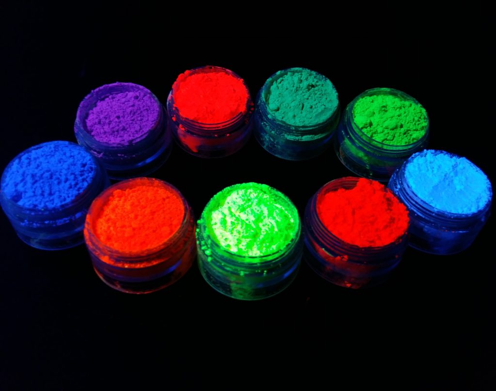 Выделяют несколько видов светящихся красящих материалов, которые отличают разные светоизлучающие компоненты в составе: