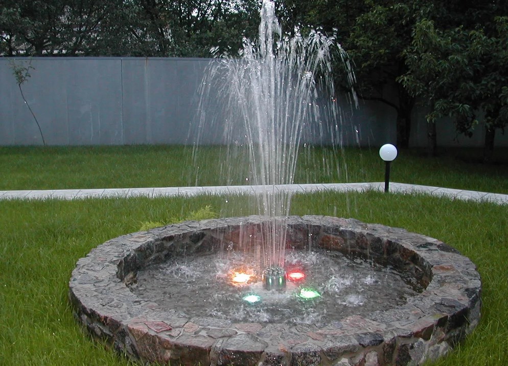 Дополнительно можно установить точечные светильники, чтобы фонтан красиво светился в темноте